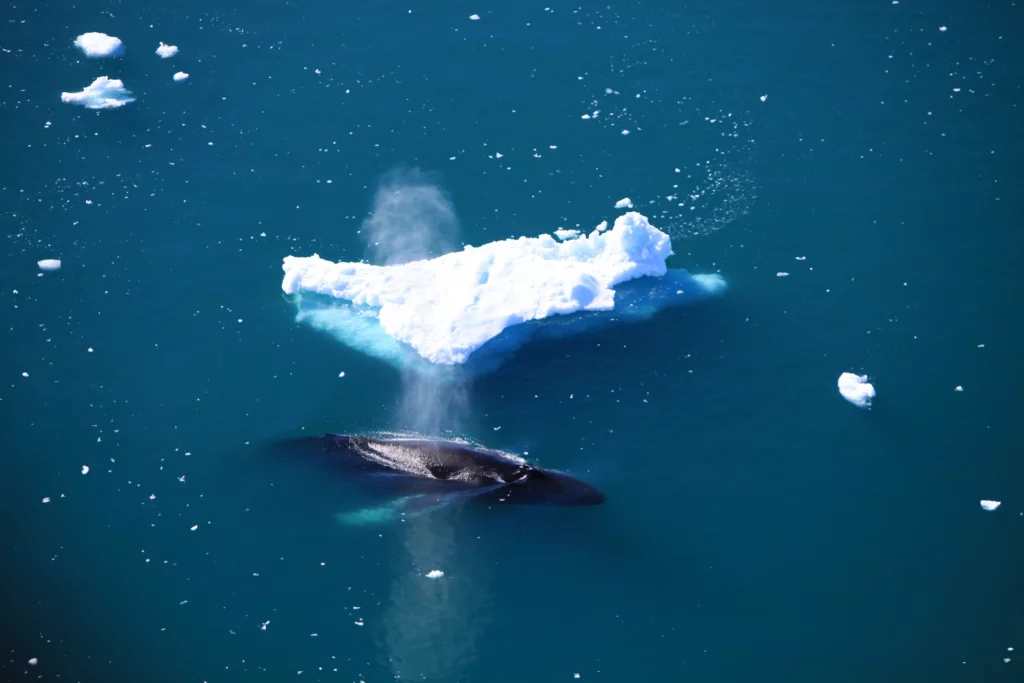 A whale surfacing among floating icebergs is one of the most striking images of the Arctic.